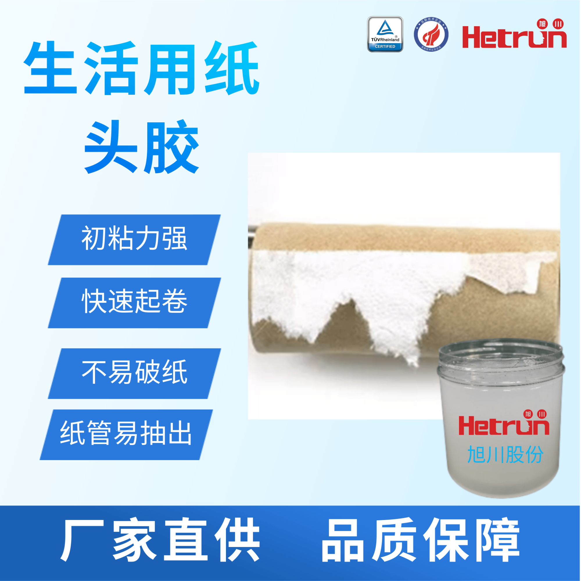 本產(chǎn)品是一種衛(wèi)生卷紙轉(zhuǎn)移用膠,具有非常優(yōu)良的初粘力與“干剝離”性能的平衡